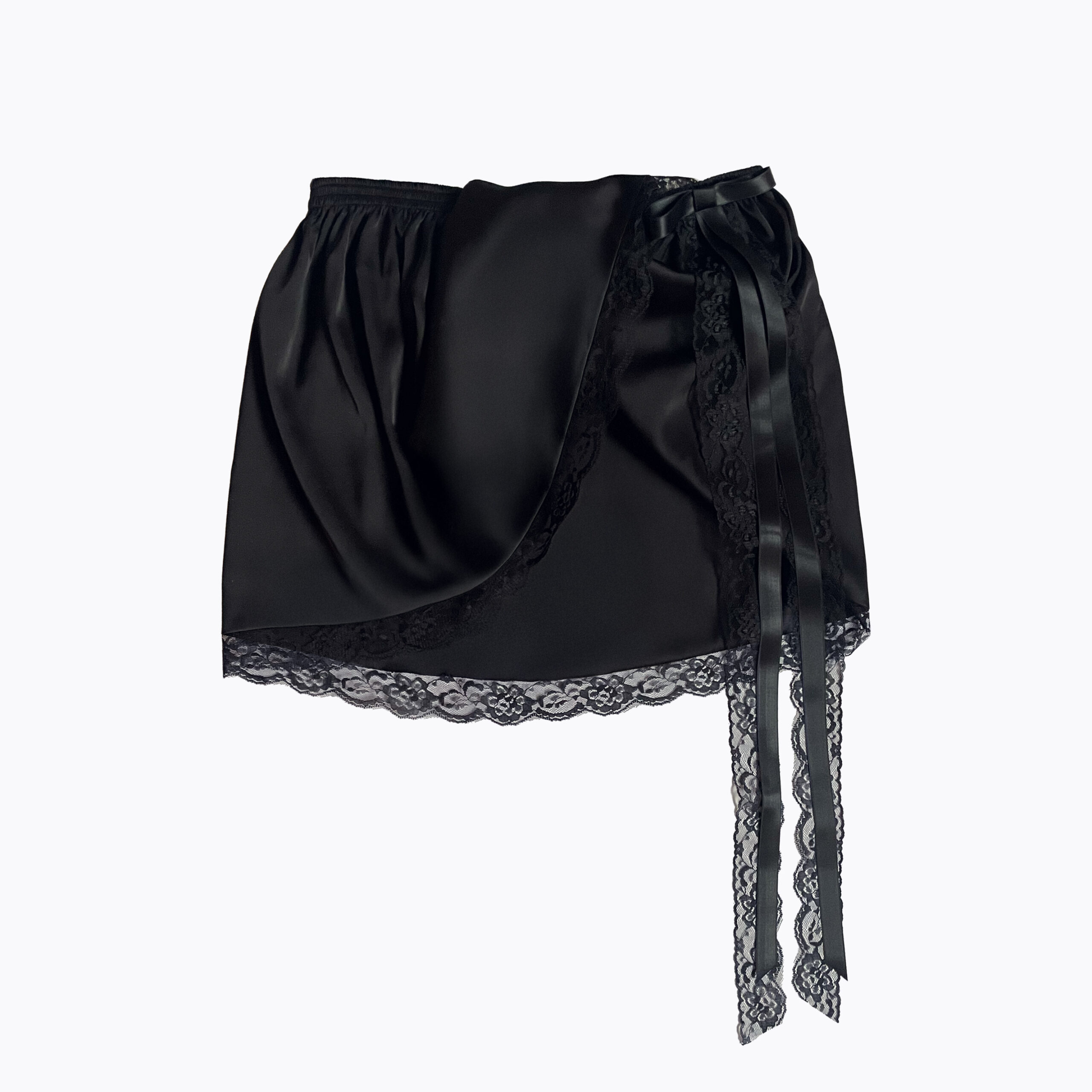 TWISTED MINI SKIRT, ELASTIC WAIST ,BOW LACE